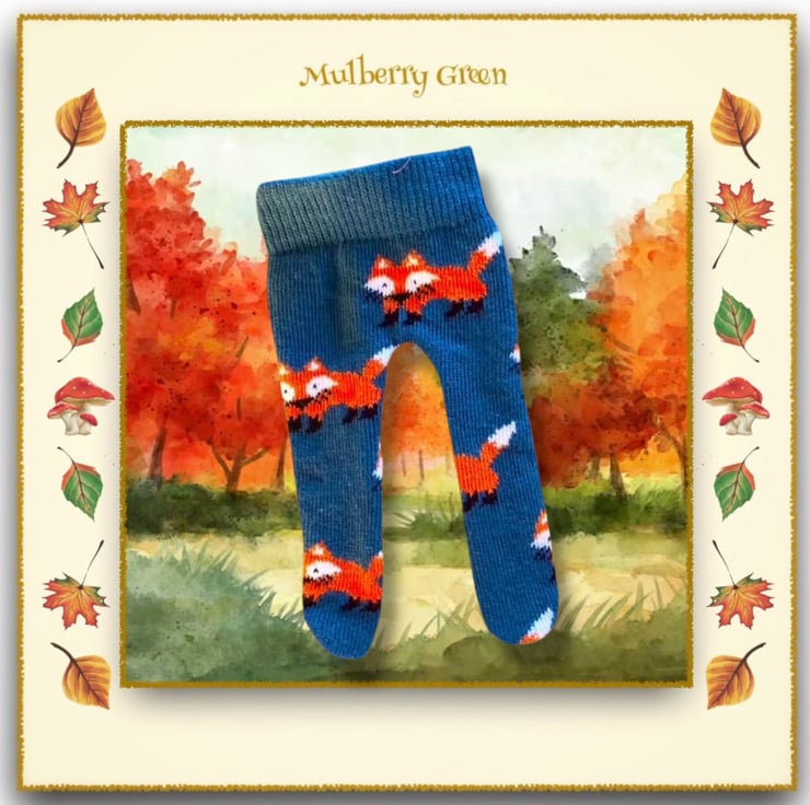 A sweet little pair of teal Mr Fox tights to fit the Mulberry Green characters. The tights look lovely with the little felt shoes and boots.