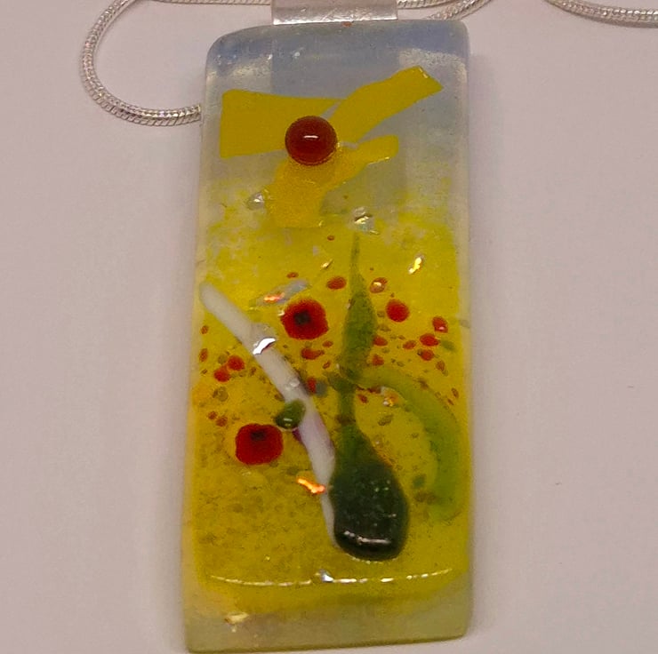 Handmade Fused Opaline Glass Pendant Necklace Poppy-field Yellow Flower