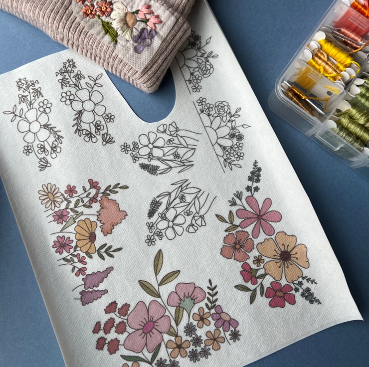 Stick and Sew Pocket Full of Posies Embroidery designs. 10 preprinted designs on soluble stabiliser. Simply cut out your design, stick, stitch and wash away. This collection of designs has been created to help with your colour choices, but you can always pick your Includes some duplicated designs for use on shoes, both Jean pockets etc