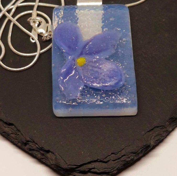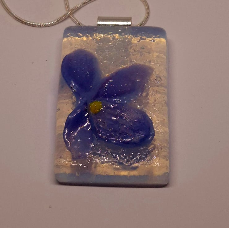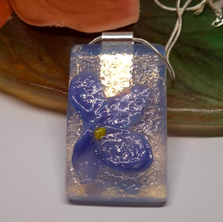 Handmade Fused Glass Botanical Pendant with Violet (A)