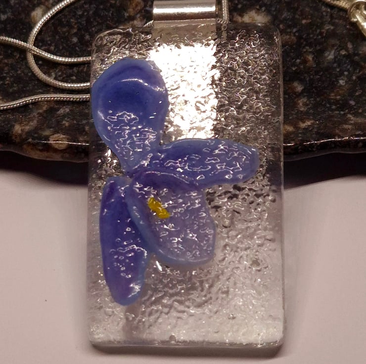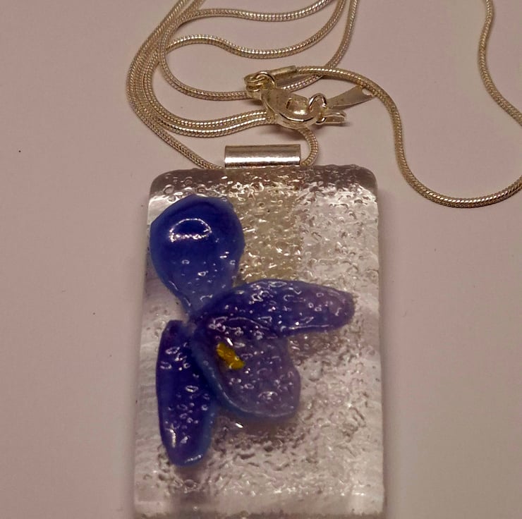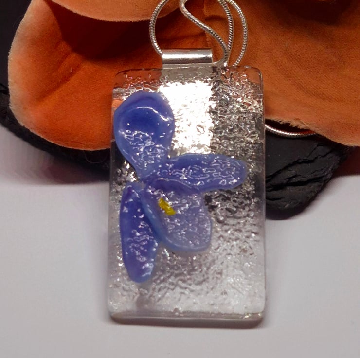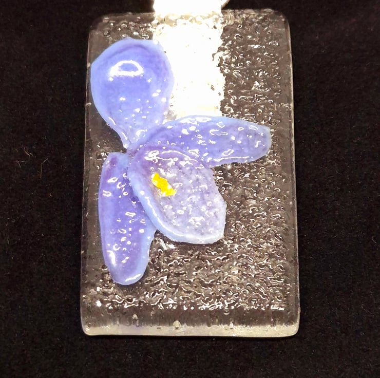Handmade Fused Glass Botanical Pendant Violet (C)