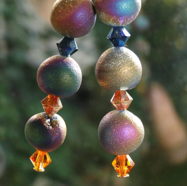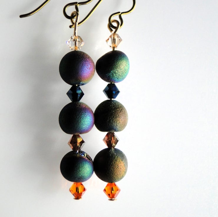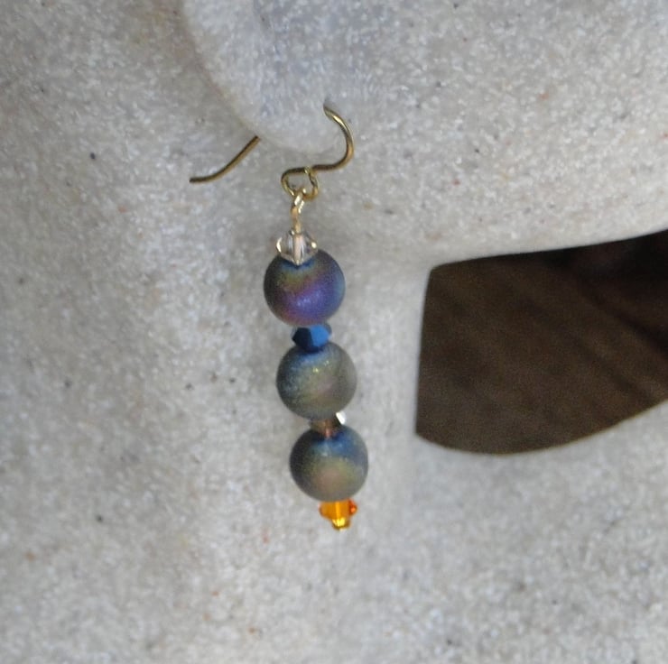 3 3 beads with niobium ear wires. Drop 2 1/4 ins(5.5 cm)