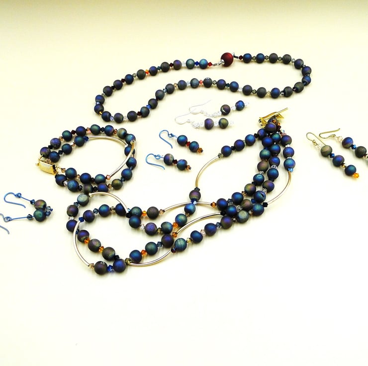 4 different earrings to match the druzy necklaces and Bracelet on my listing