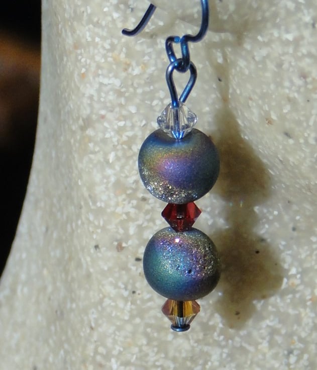 2b 2 beads with niobium ear wires. Drop 1 1/2 ins (4 cm)