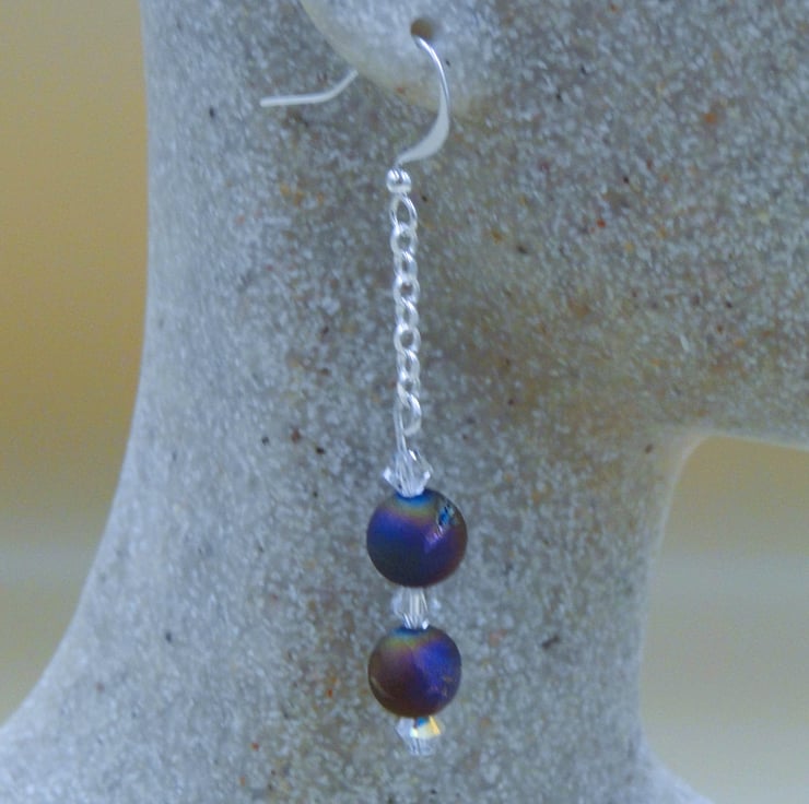 2a 2 beads with sterling silver chain and ear wires.Drop 2 1/2 ins (5cm)