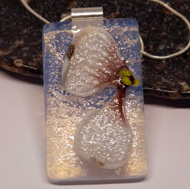 Handmade Fused Glass Botanical Pendant Necklace Pale Dogwood (A)
