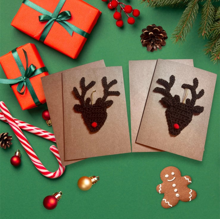 These Christmas Ornament Cards are perfect to give and they keep on giving as the reindeer ornament can be detached and hung on the Christmas Tree or used to decorate the home.