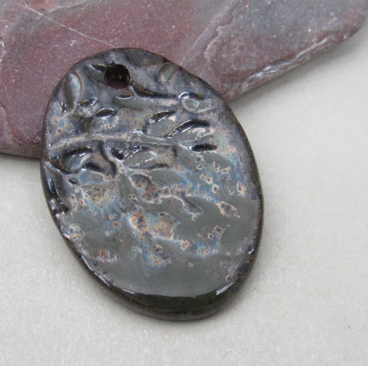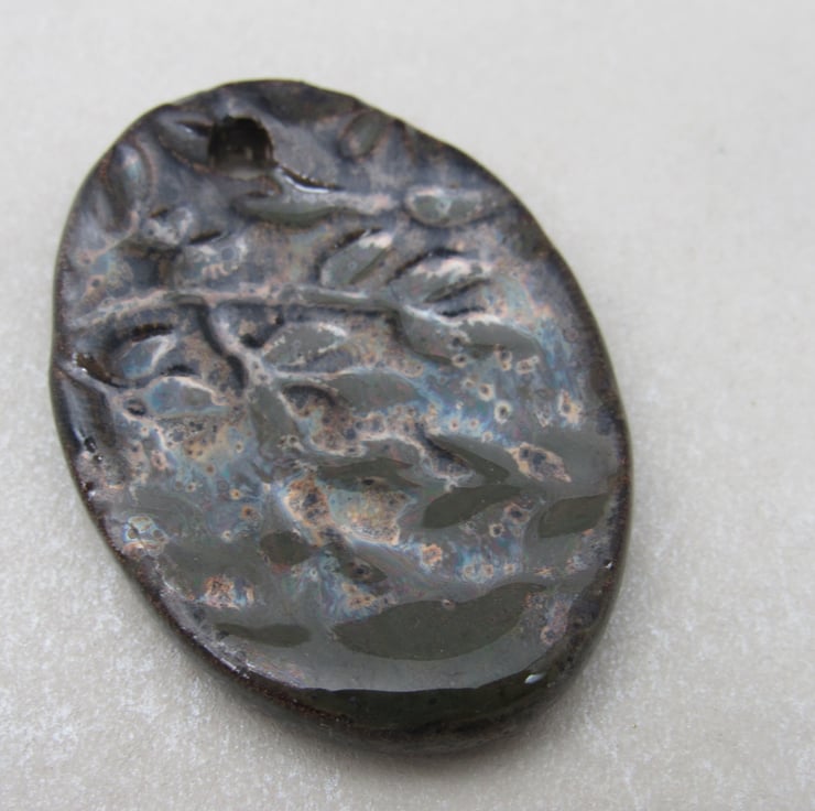 Large Obsidian Leaf Sprig Ceramic Pendant