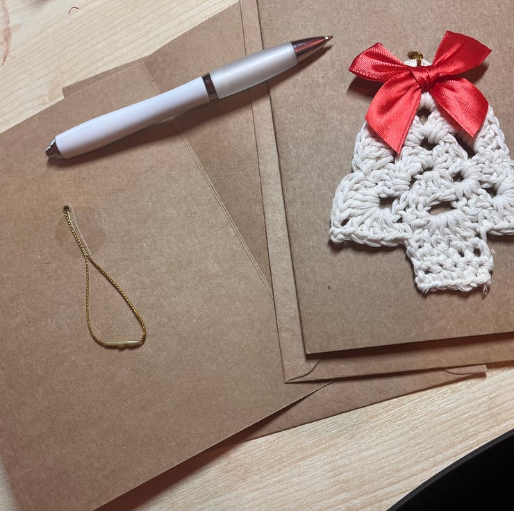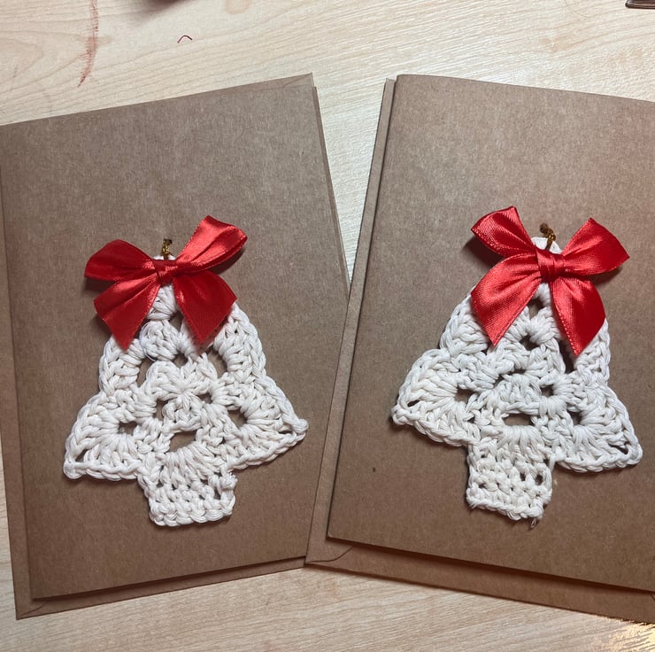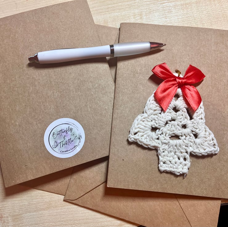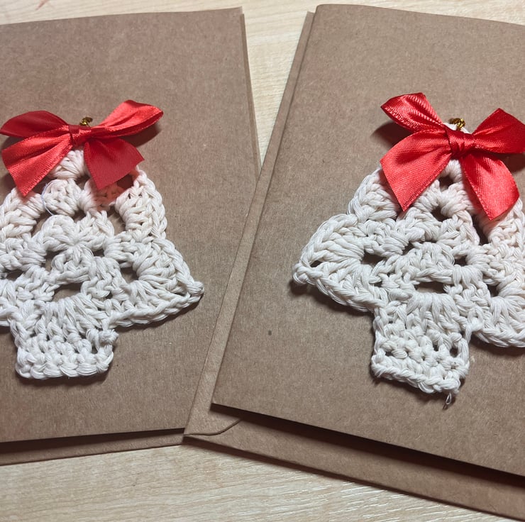 This set of two Crochet Christmas Ornament Cards are a perfect card and small gift in one. Stitched with a cotton blend yarn gives a “folksy” look to the card and ornament.