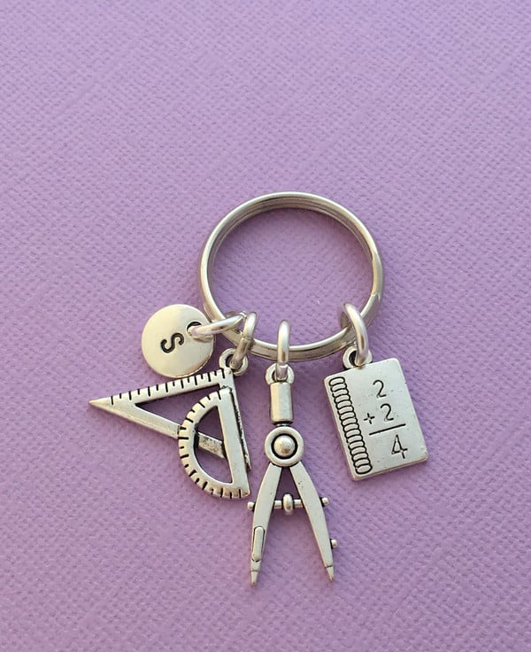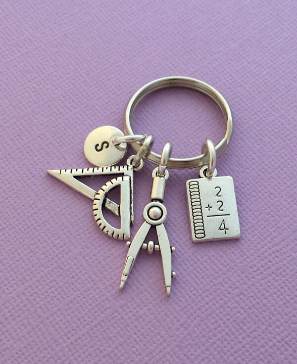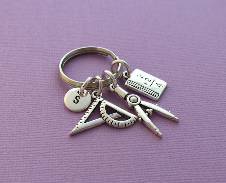 Keychain is made up of super cute Maths essentials and a round initial charm
