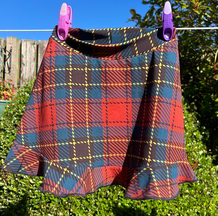 Super comfy red and blue, with a touch of yellow, tartan frill skirt. The perfect twirl skirt!