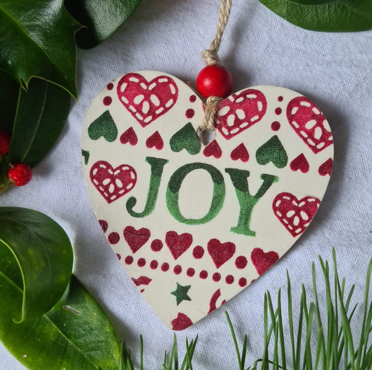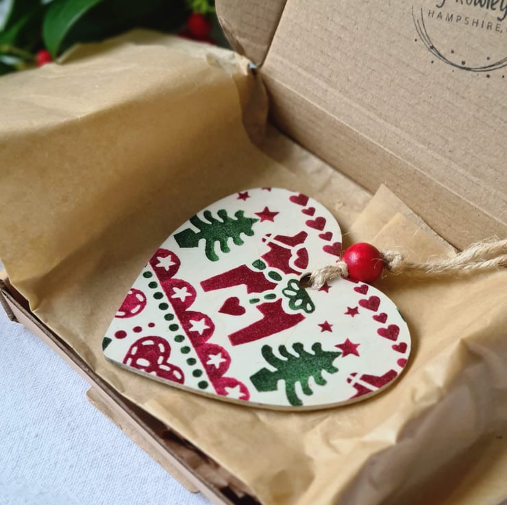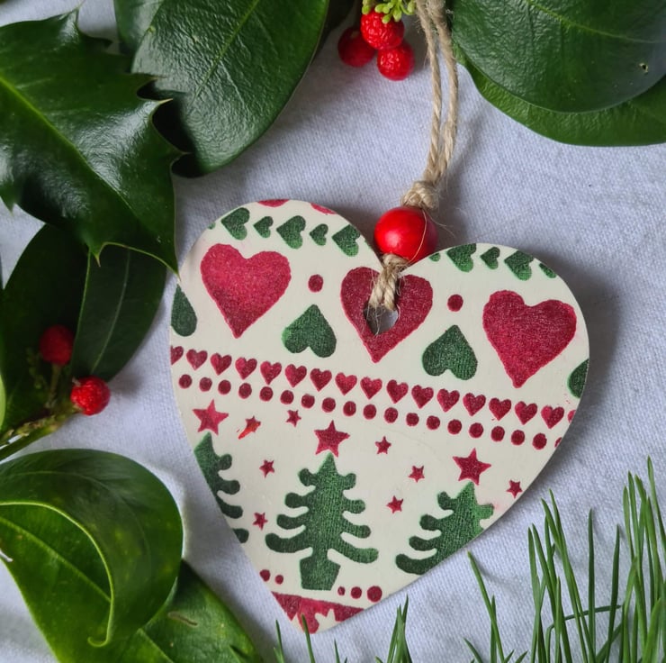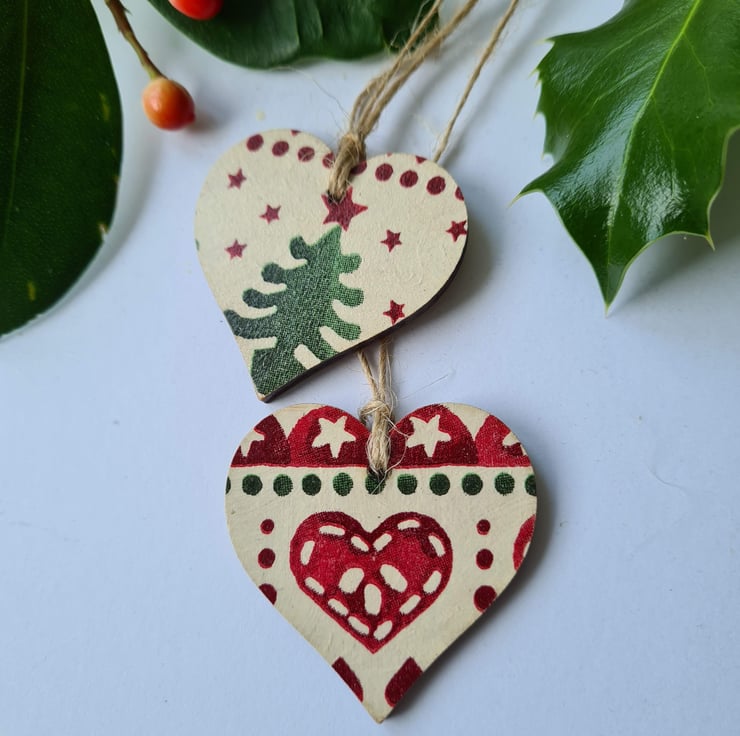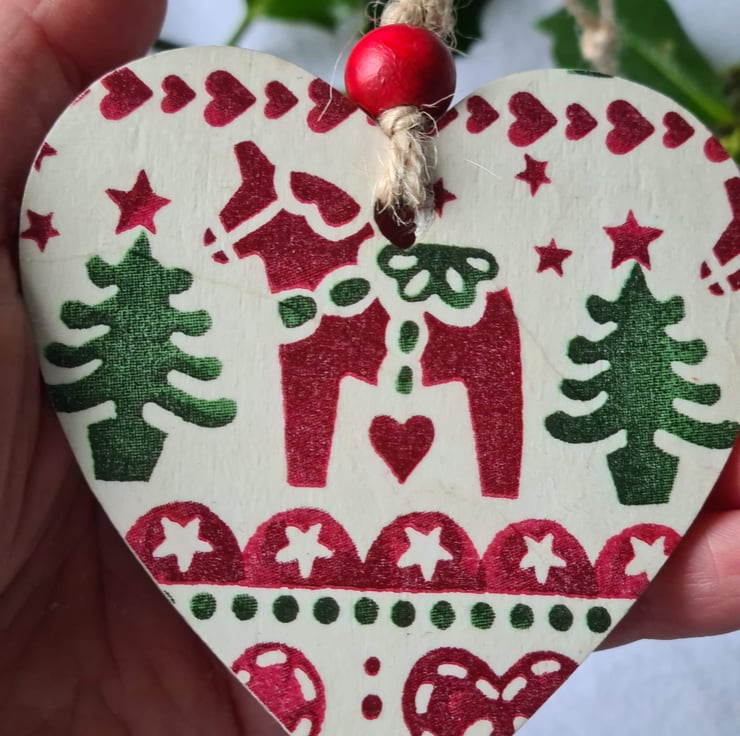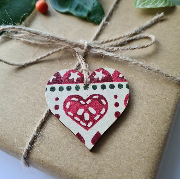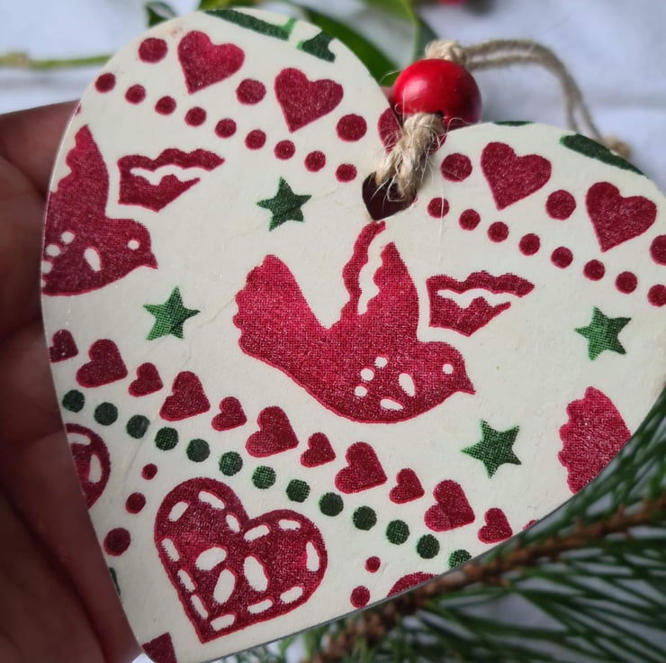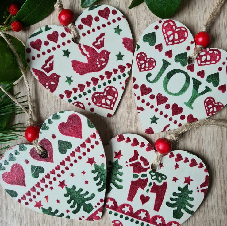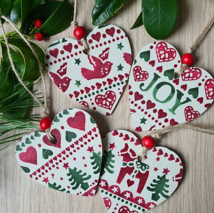These decorations would also make pretty home decor, for example, hung on a hook, a handle, at a window, or other places in the home. They also make a perfect letterbox gift. These decorations are also available individually, though this set represents great value compared to buying them separately. Mini heart gift tags in this design are also available. See pics for all decorations available in this design.