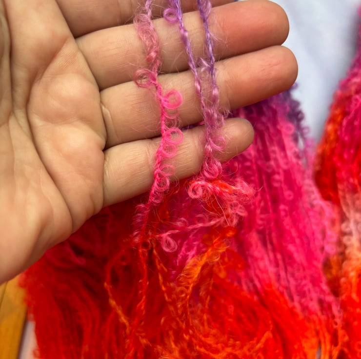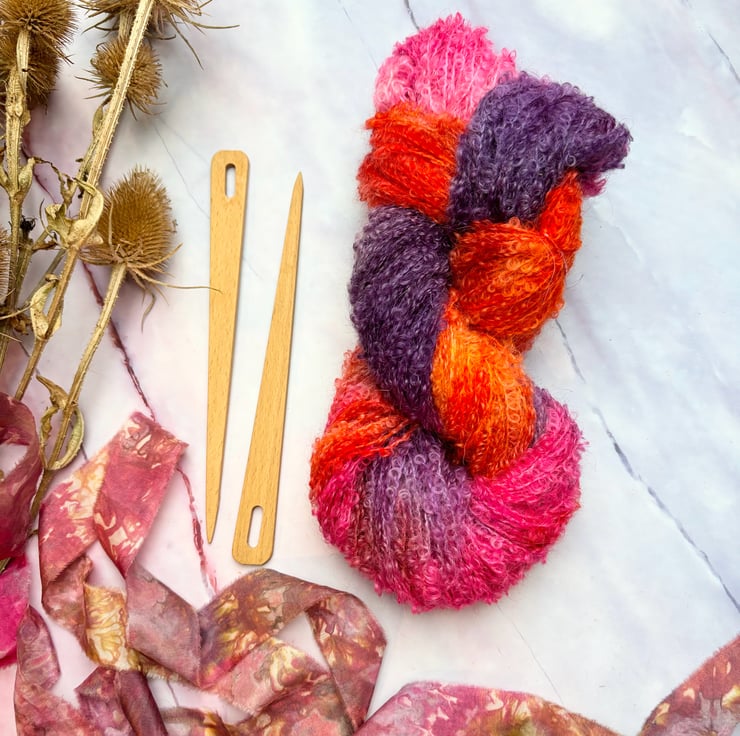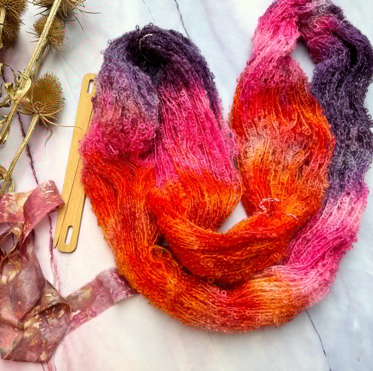 This angora mohair loopy boucle is perfect for any project and adds a touch of luxury to your creations. With its high-quality material and beautiful colours, you can make anything from scarfs and blankets to decorative items. This yarn is ideal for knitting weaving doll making and felting textile projects