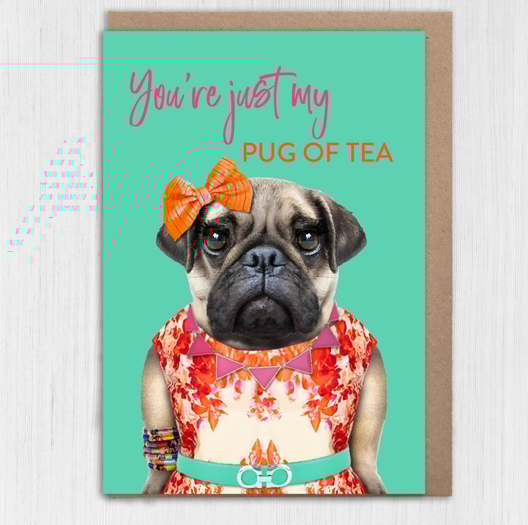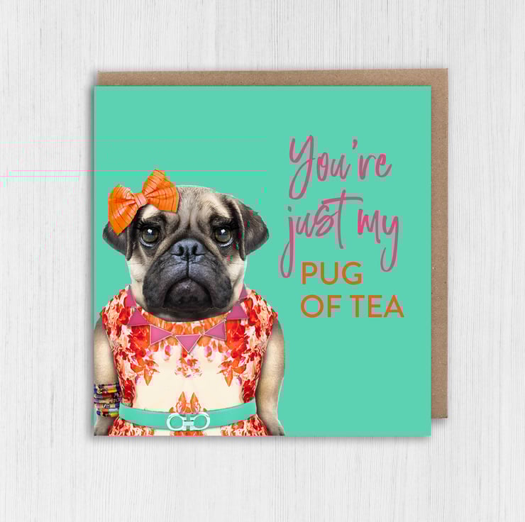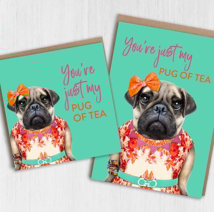 You're just my pug of tea animal in clothes anniversary, Valentine's Day, birthday card for wife, husband, girlfriend, boyfriend Animalyser (Size A6/A5/A4/Square 6x6")