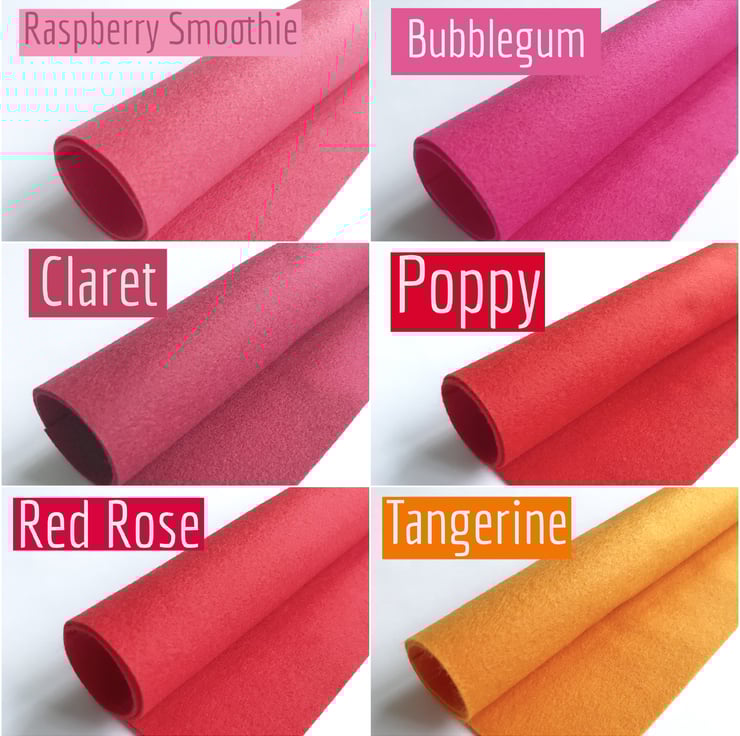 Take a look in our shop for the full range of felt - we have over 50 colours and 4 different size sheets available.