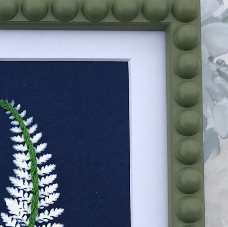 The pretty Green bobbin-edged frame with white mount enhances this simple botanical with embroidery.