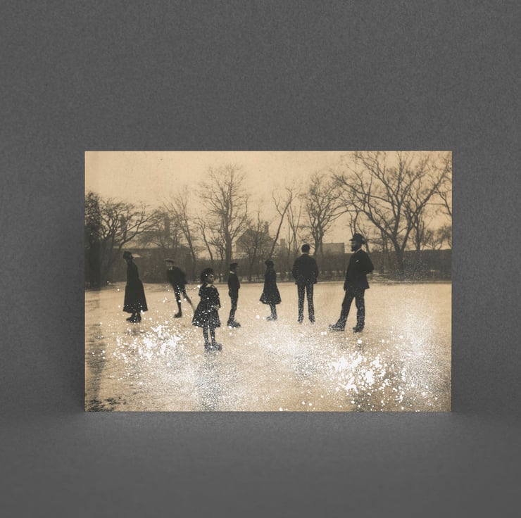 A fun vintage ice skating scene with a modern edge. This pretty Christmas card will make a loved one smile.