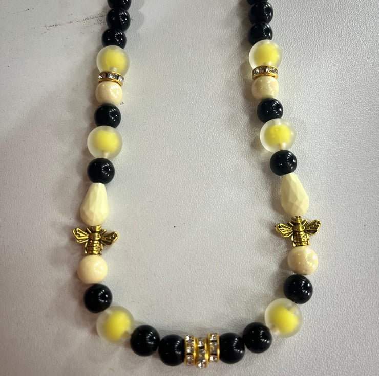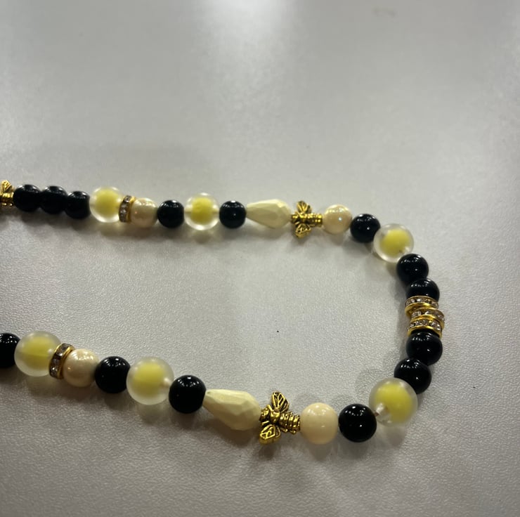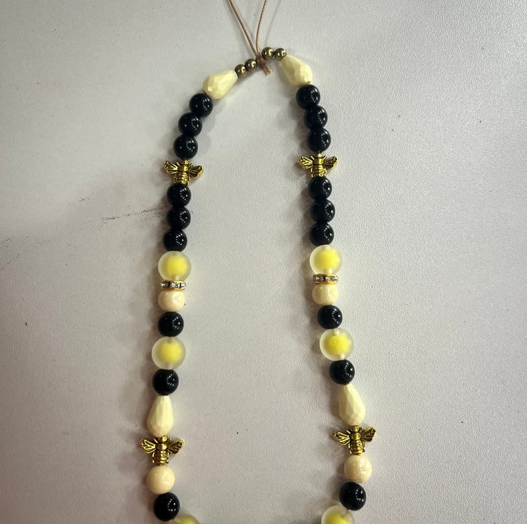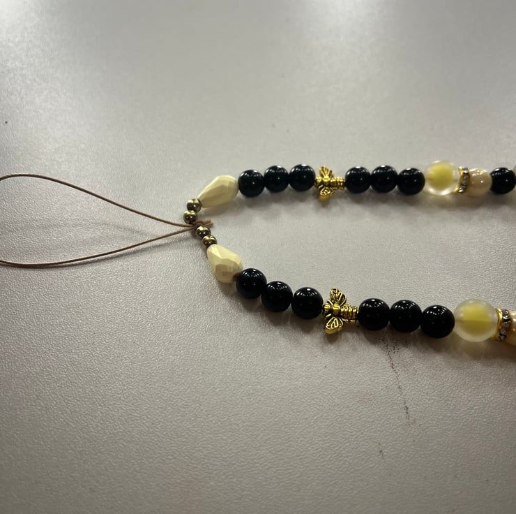 Gorgeous bee themed yellow and black phone strap / phone charm