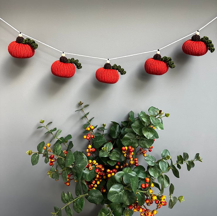 Reusable year after year, this garland is comprised of seven perfect pumpkins and measures approximately 1.25 metres in length.
