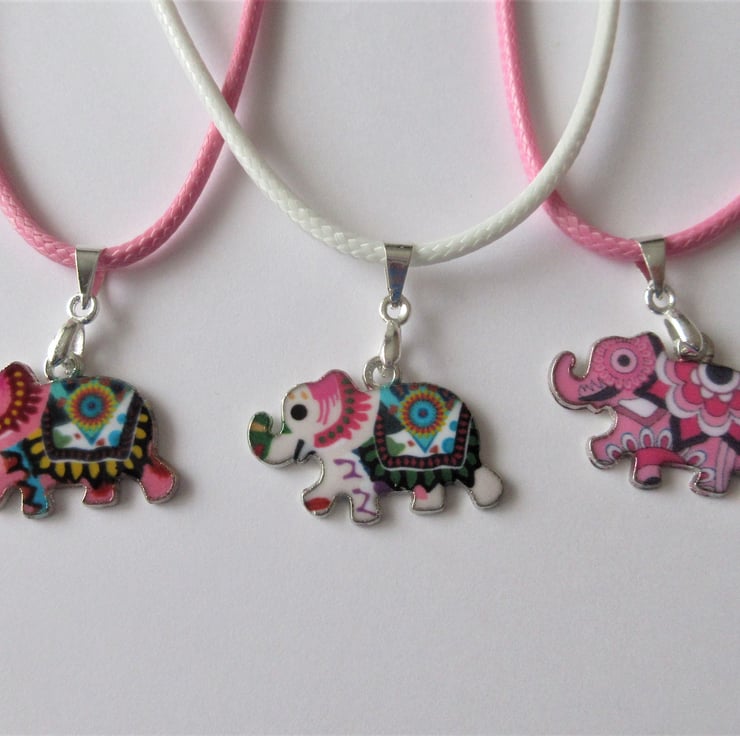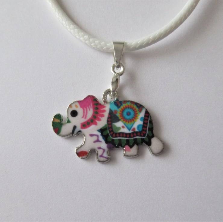 A cute elephant necklace, with white waxed cord and a pretty coloured elephant charm.