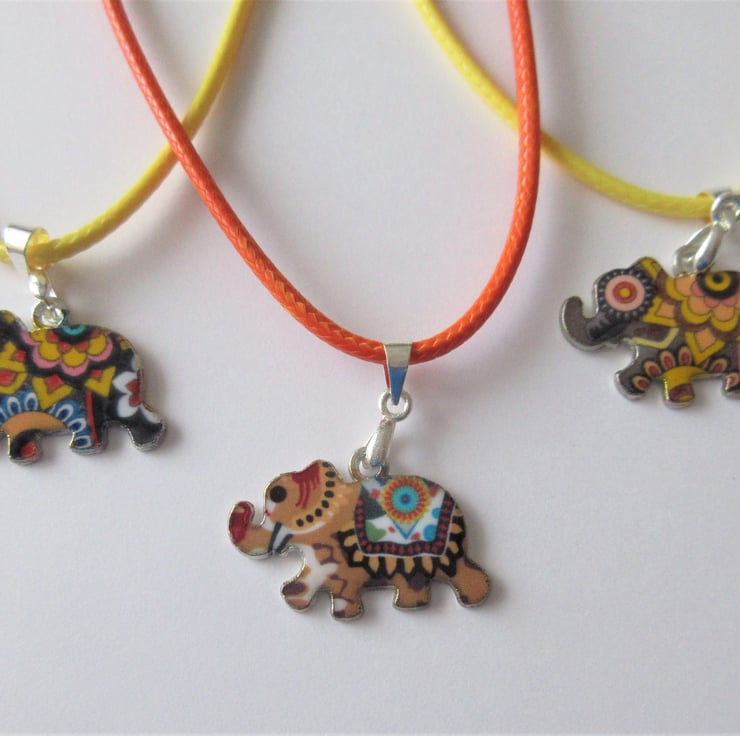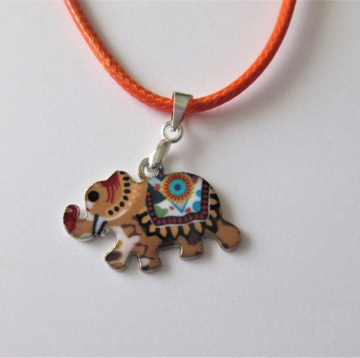 A cute elephant necklace, with an orange waxed cord and a pretty coloured elephant charm.