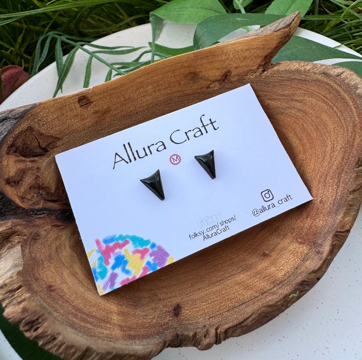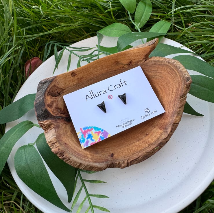 Black polymer clay has been finished with uv resin for glossy colour pop.