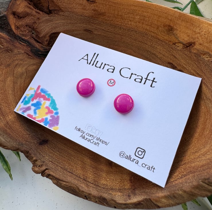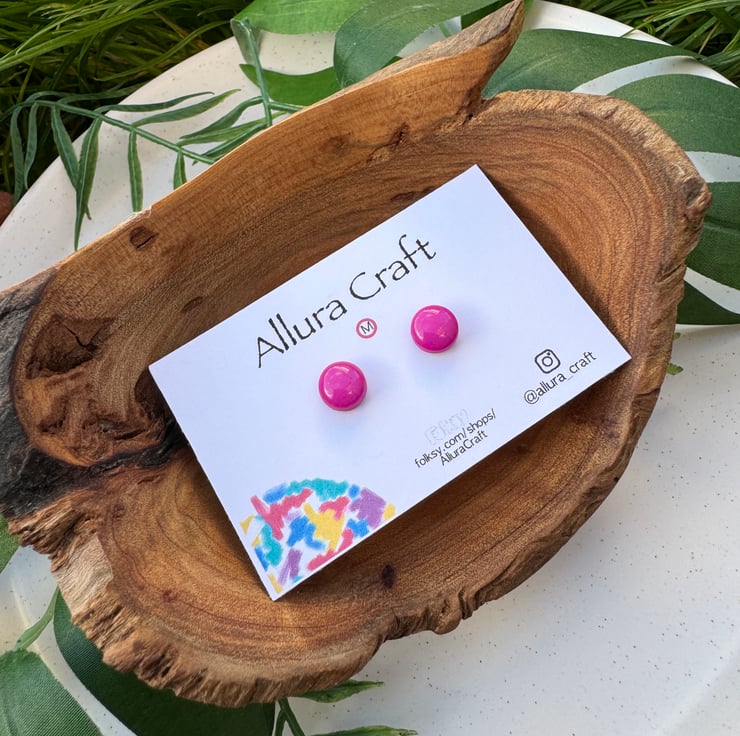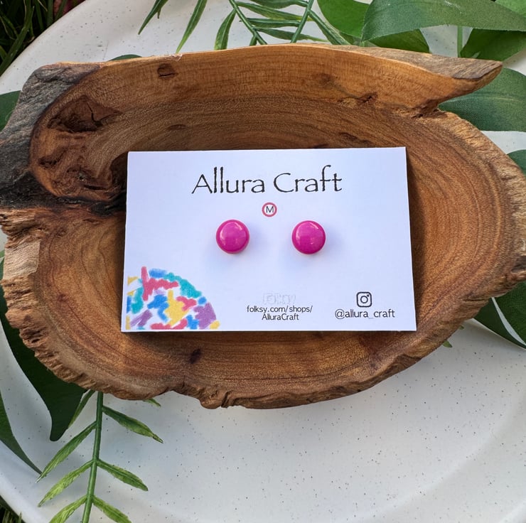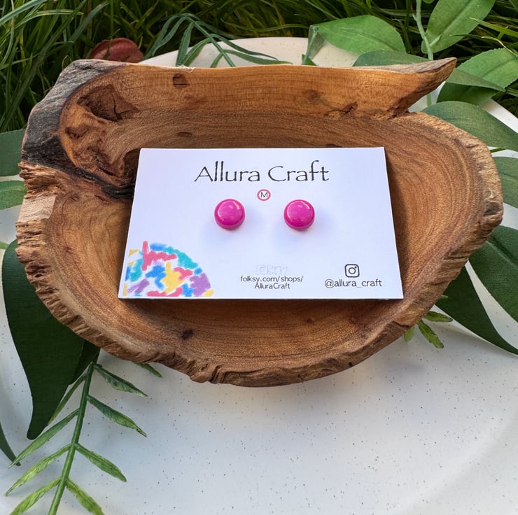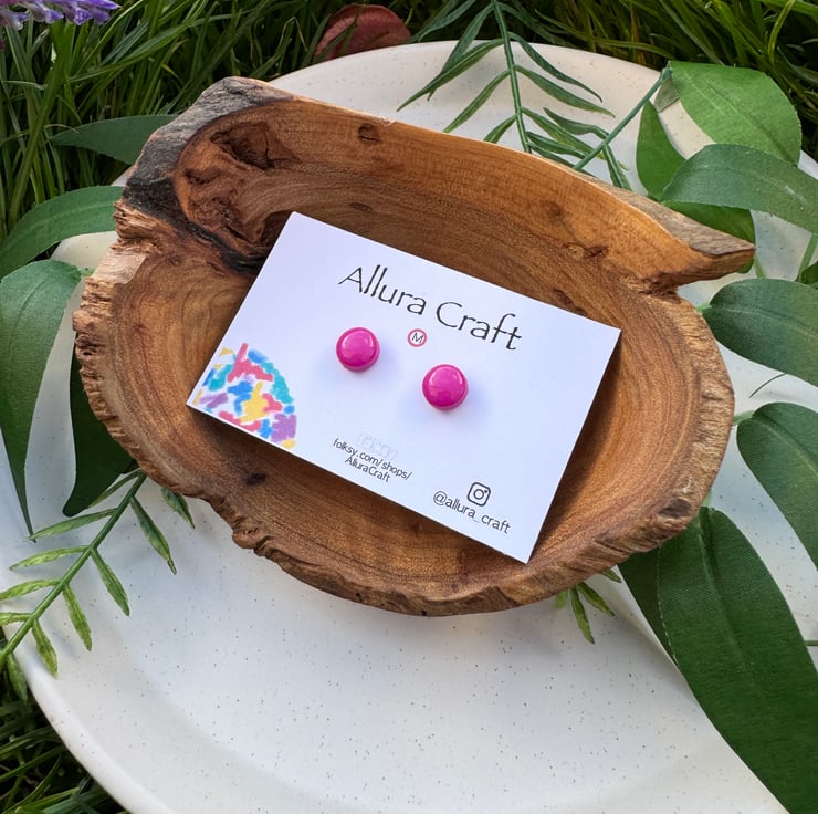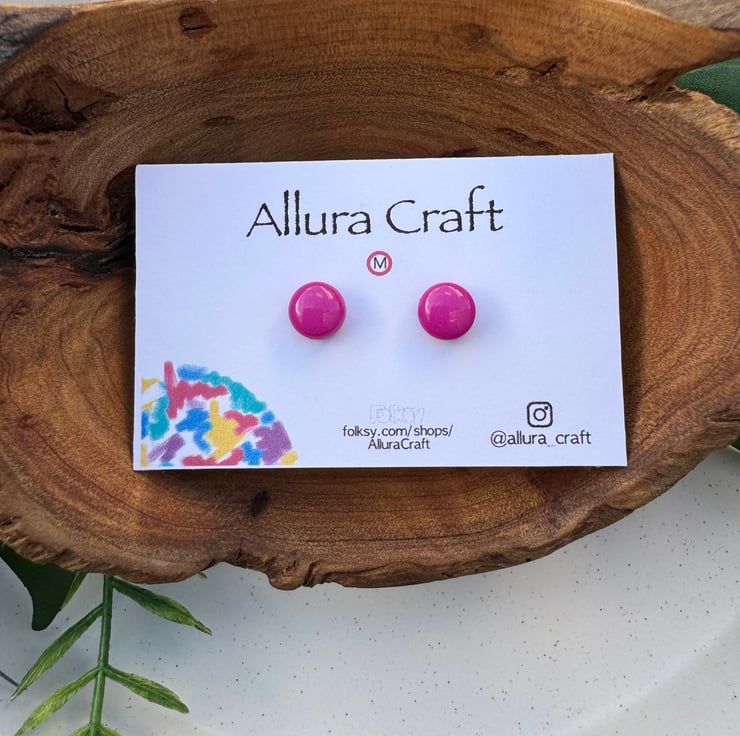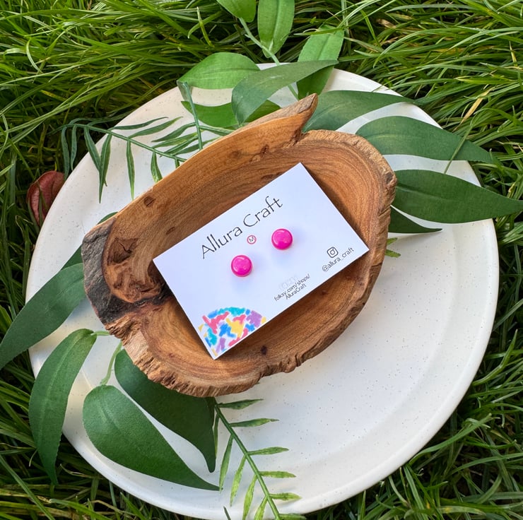 Fuchsia Pink block solid glossy colour, little micro circle studs.