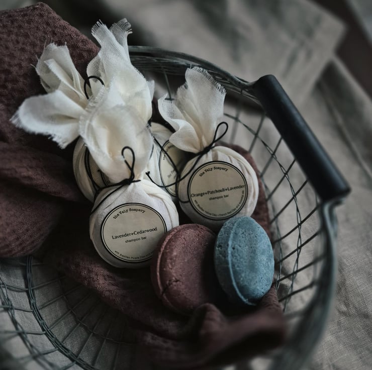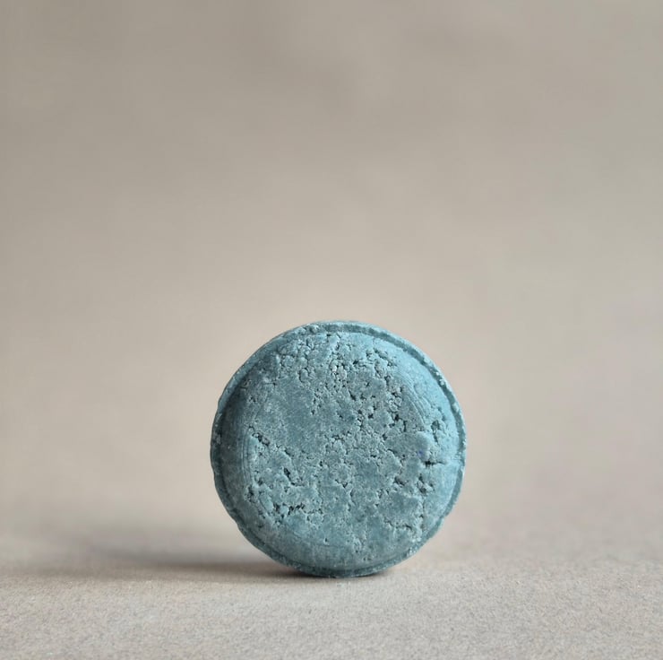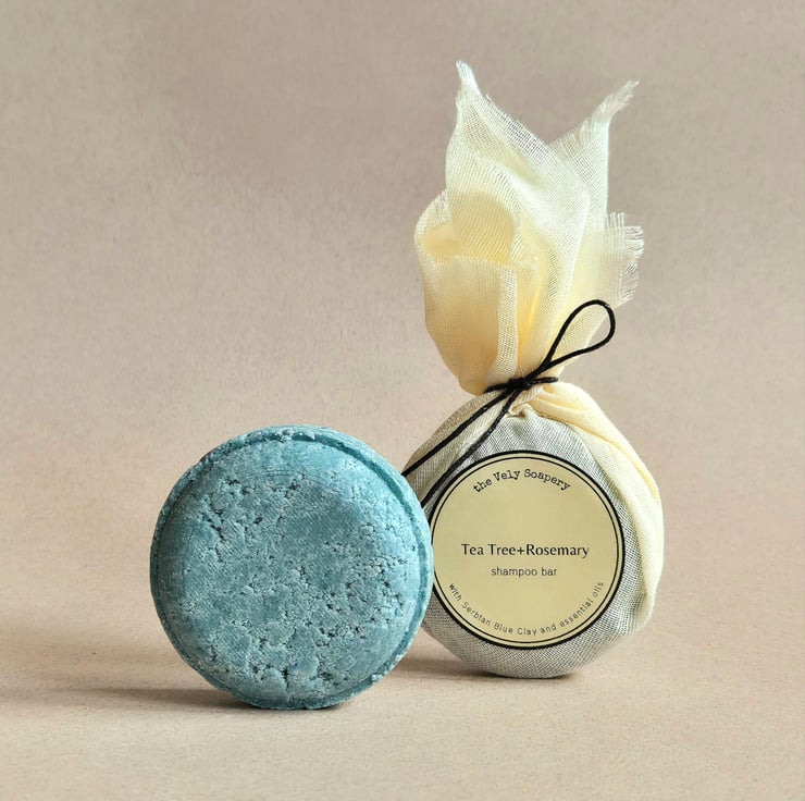 Solid Shampoo Bar with Serbian blue clay; scented with a blend of Tea Tree and Rosemary Essential oils.