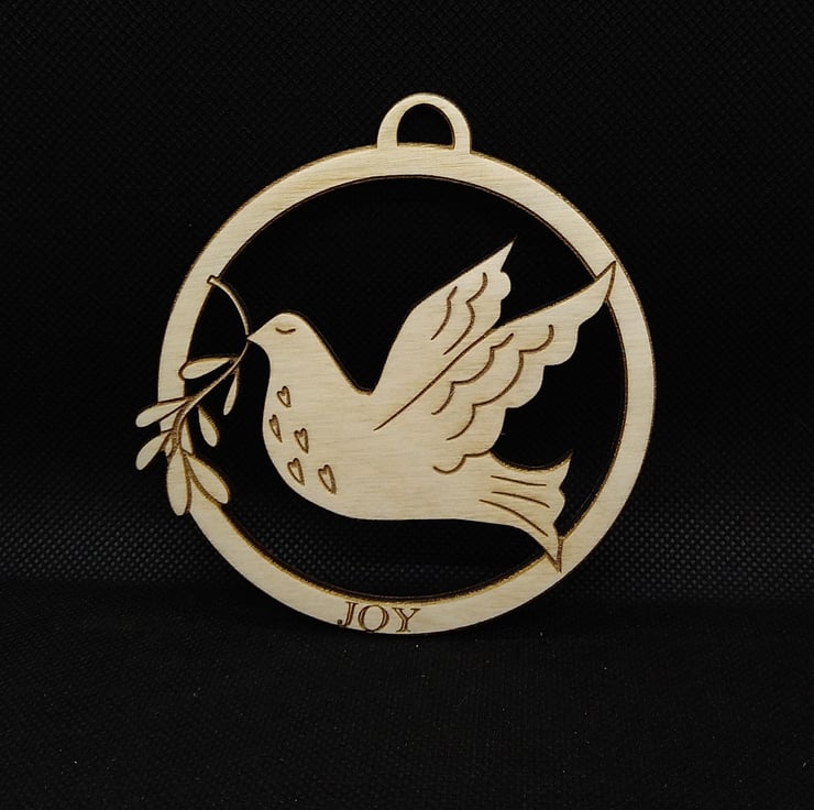 Wooden Dove, olive branch, Christmas tree decoration