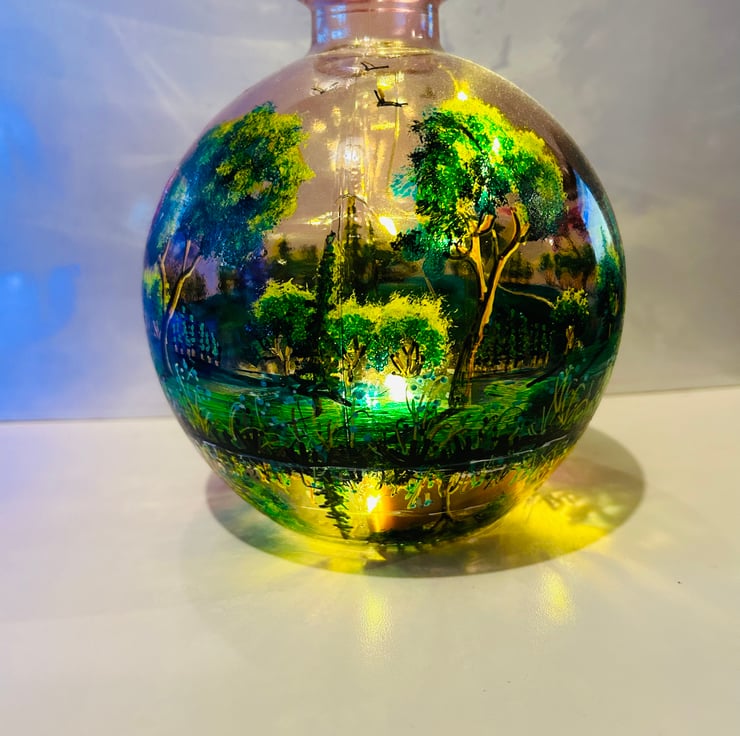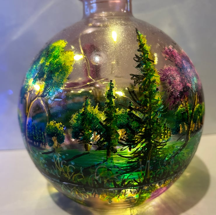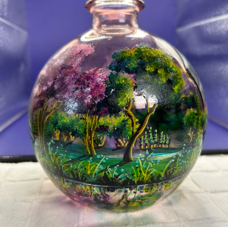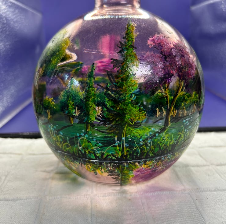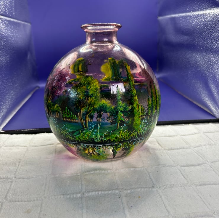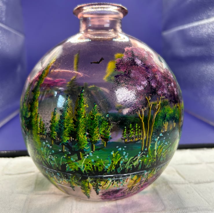 A hand painted and fired glass globe vase by Andrew Jenkins