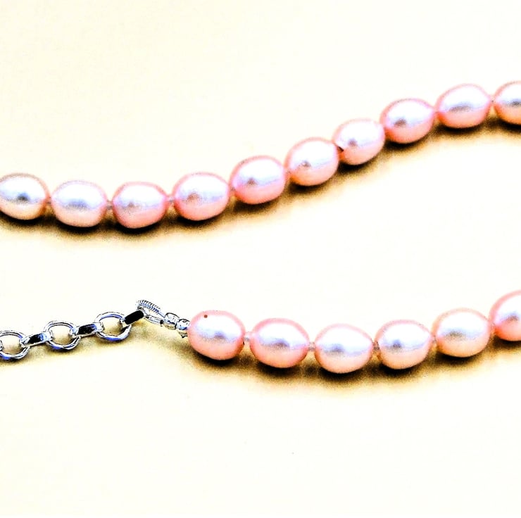 Pale pink bracelet with pearl beads (6mm x 4mm) and sterling silver chain and clasp. A pretty present for a young lady.
