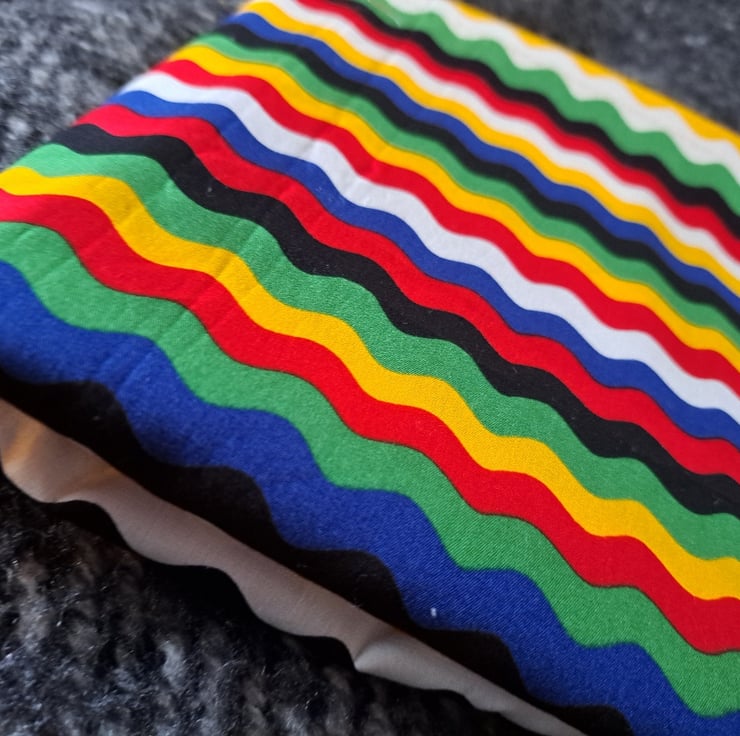 Occasionally I find it hard to part with a fabric. I know I must say goodbye but it hurts. This length of new and unused cotton fabric by Hill-Berg in a bright ric rac design is one of those moments. I love its bold primary and yet old-fashioned tones. It's a good quality craft- or dressmaking-weight cotton and measures 1.76 metres and is 117cm wide.