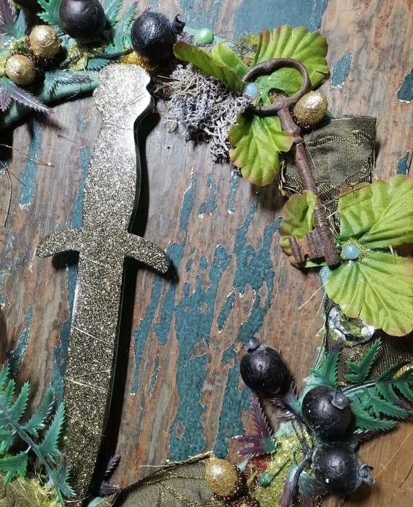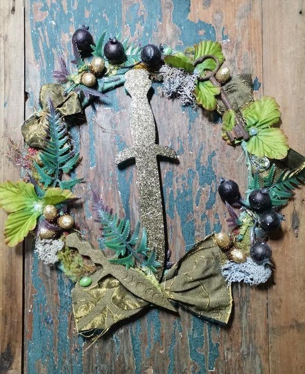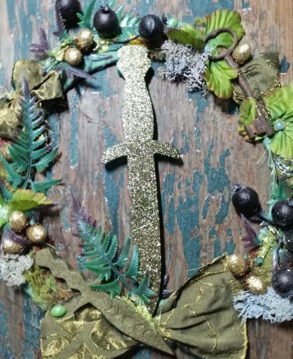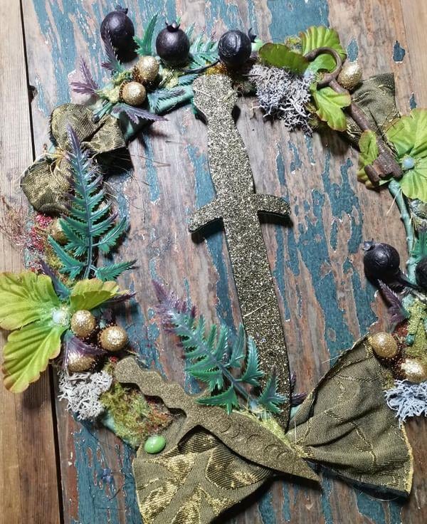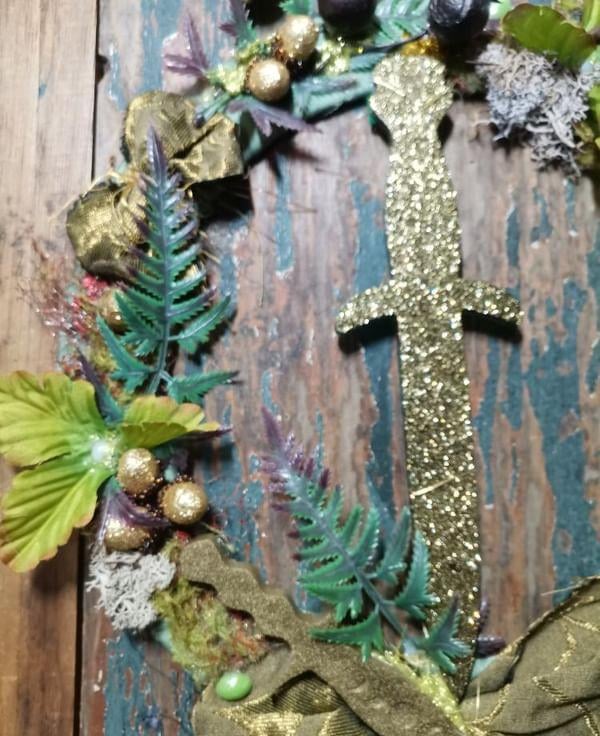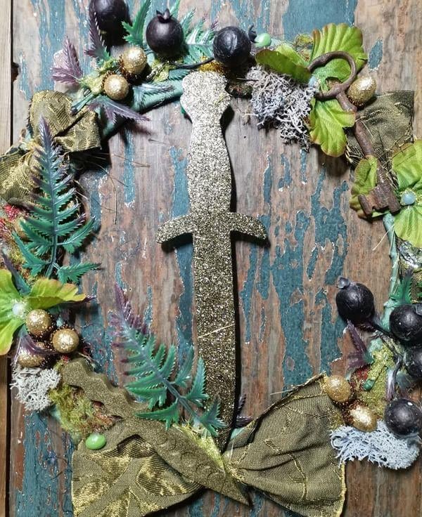 A beautiful hand crafted wreath, perfect for fantasy book lovers...