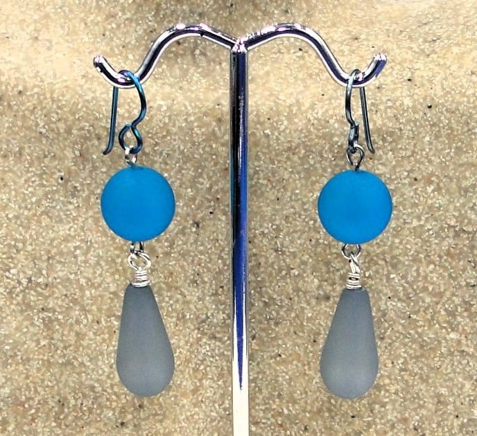 There are matching earrings Drop 2 ins / 5 cm. They have a niobium wire