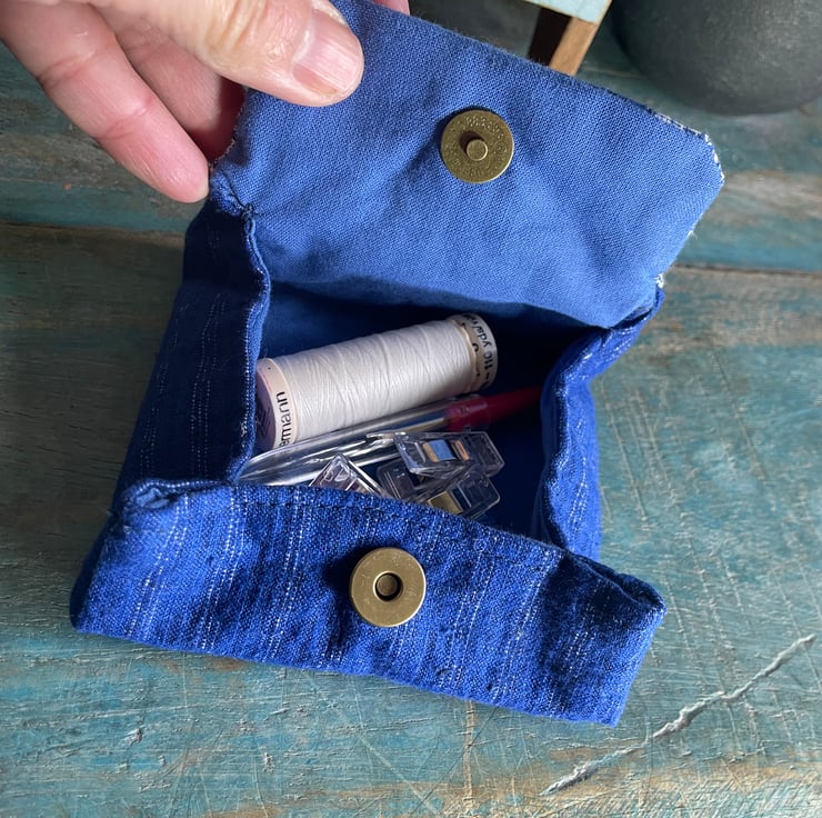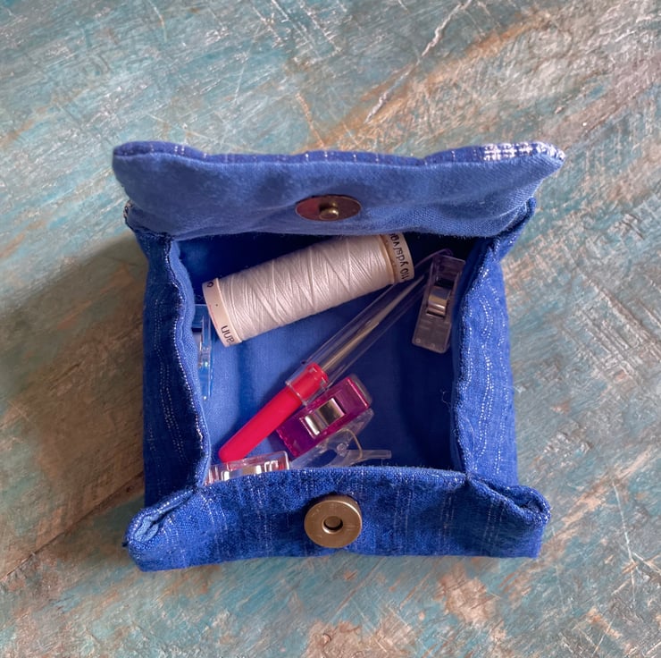 Compact yet roomy, this boxed purse is a perfect small wallet or pouch for storing your daily essentials. Its unique shape opens up to reveal a structured, small box-like interior, ideal for carrying cash, cards, keys or cosmetics. It's also perfect for storing some sewing tools when you want to go out and sew :).