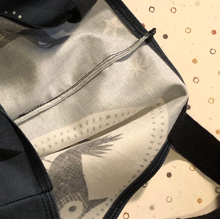 Created using fabric which featured printed panels, this bag has been stitched with French seams for a neat finish. The black, soft woven straps are long enough to carry on the shoulder or to hang on the arm. The inside is large enough for most things that are commonly carried around; phone, wallet, keys and novel, or, alternatively, use it to carry around your paint-set, pencils and sketching books, or your latest yarn or thread project. You could even fill it with dried flowers and hang as a decorative item!