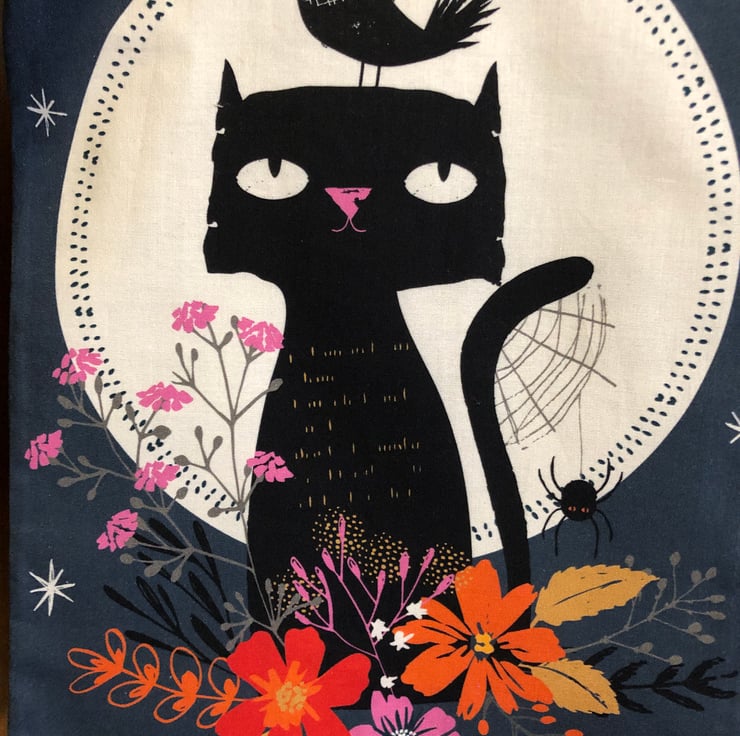 Inspiration came from the fabric itself, the panels were just the right shape to create bags. Ideal gift for a cat lover!
