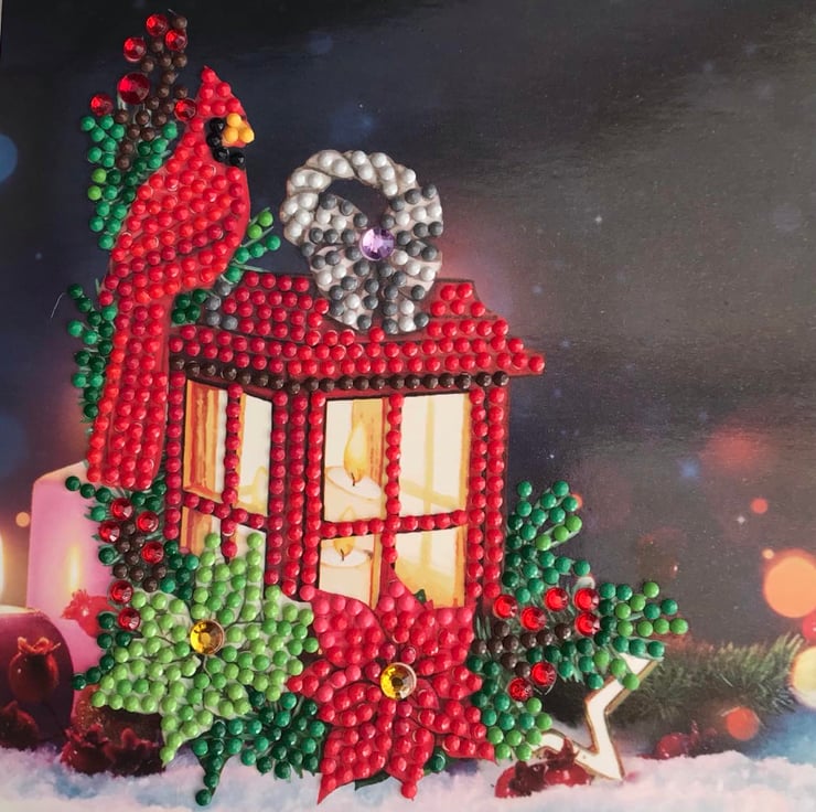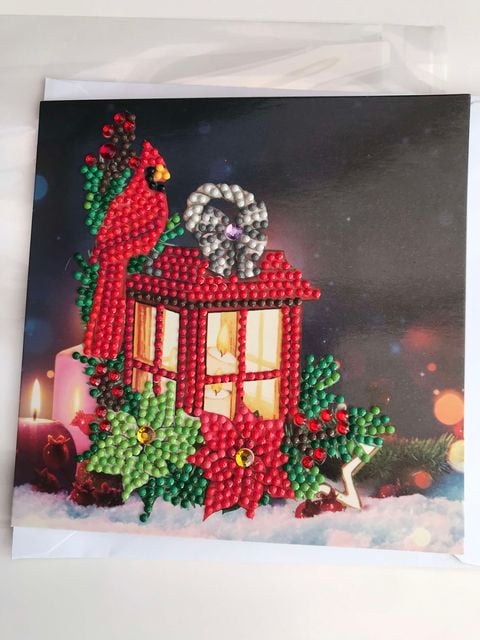 “Gems” have been placed manually one by one to create this amazing Christmas card for this amazing Cardinal. Worked for up to an hour on this card.
