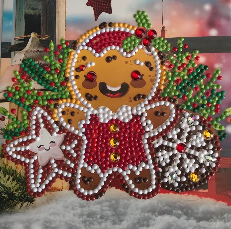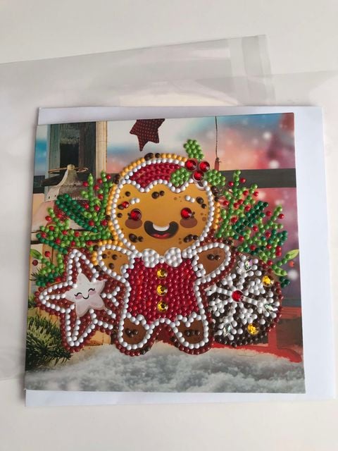 “Gems” have been placed manually one by one to create this amazing Christmas card with a decoration Gingerbread design. Worked for up to an hour on this card.