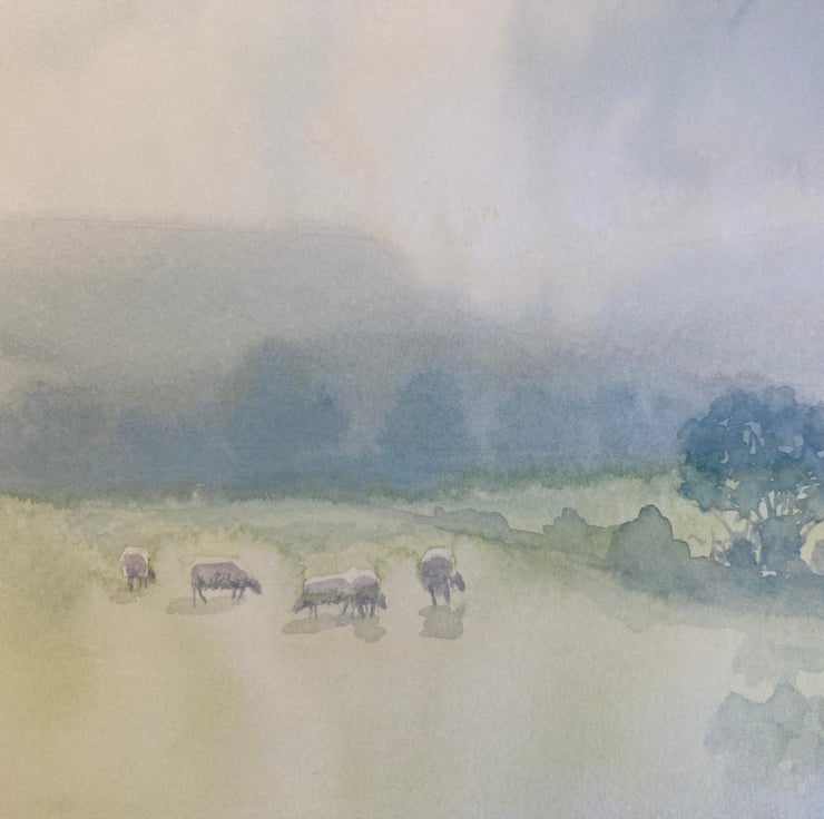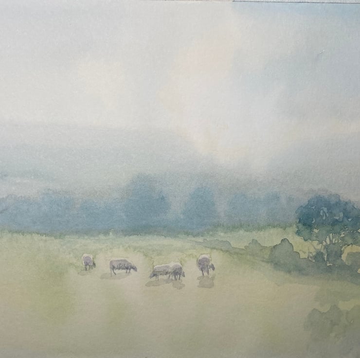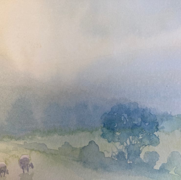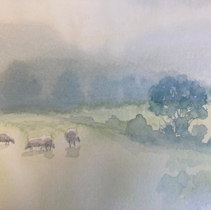En plein air study. Incredible mix of light and fog in the morning giving a dreamlike appearance of this scene.