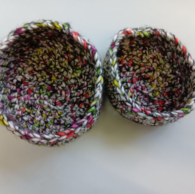NEW SHOP! I love crocheting and creating beautiful and practical pieces and sourcing good quality yarns. These nesting baskets are made from a luxury variegated yarn. I have sets in my bedroom to hold makeup and trinkets, in my home office to hold pens and stationery and in my kitchen to hold all the bits and bobs that gather there. Enjoy unique work by Handmade by Joy - browse my shop for more, new items added regularly! BONUS - free postage!