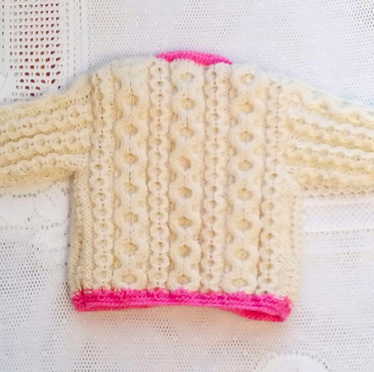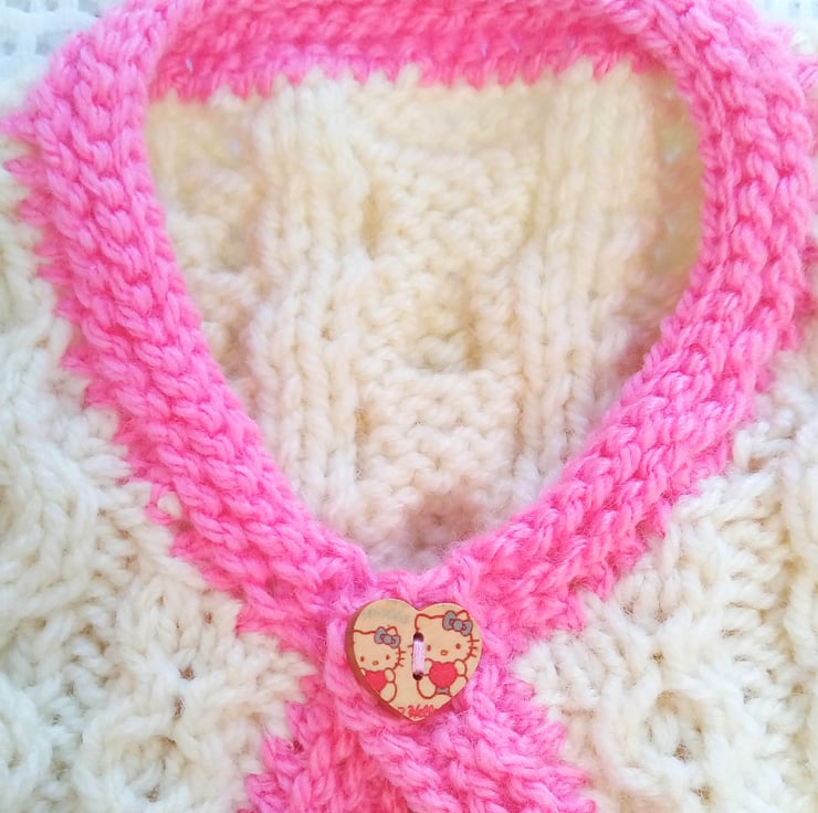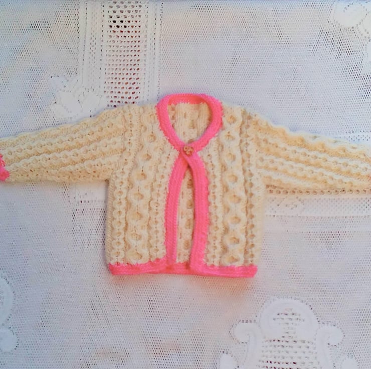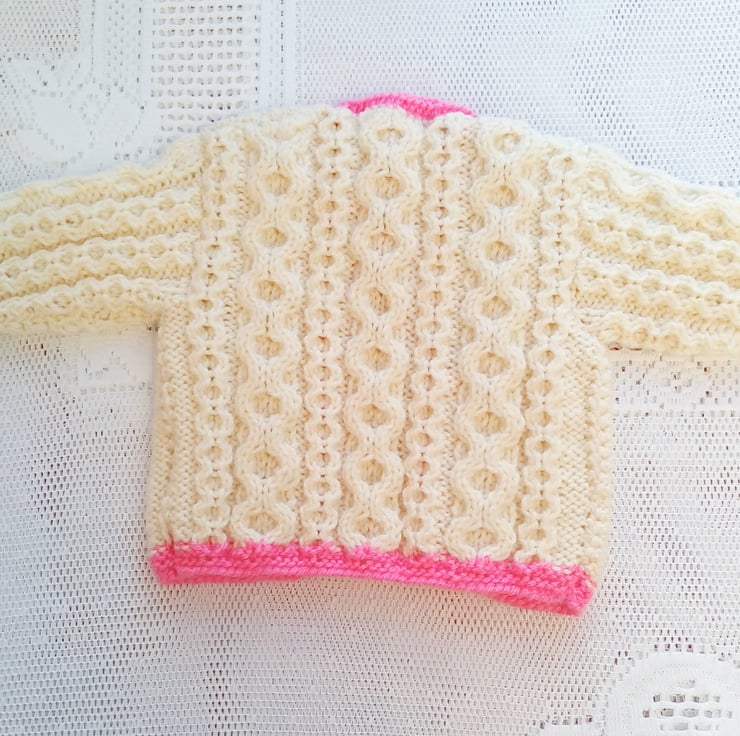 Girls cable pattern cardigan. The cardigan is not currently in stock but it can be made especially for you in a colour and size of your choice. Please let me know the colour required when you order. Available sizes are shown at the bottom of this listing. The processing time for this item will be 1 - 2 weeks to produce and post to you.