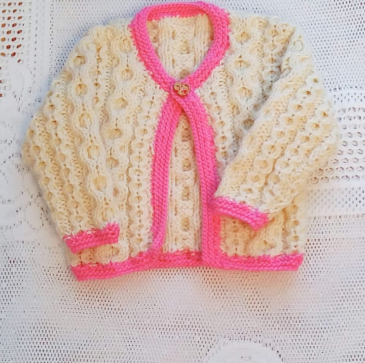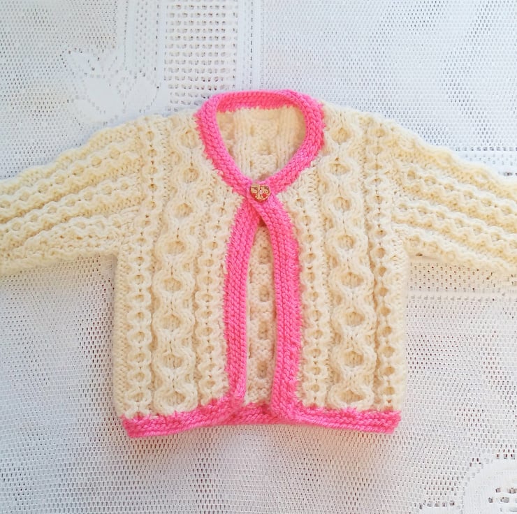Single Button Cabled Cardigan for a Girl, Girl's Aran Cardigan, Baby Shower Gift