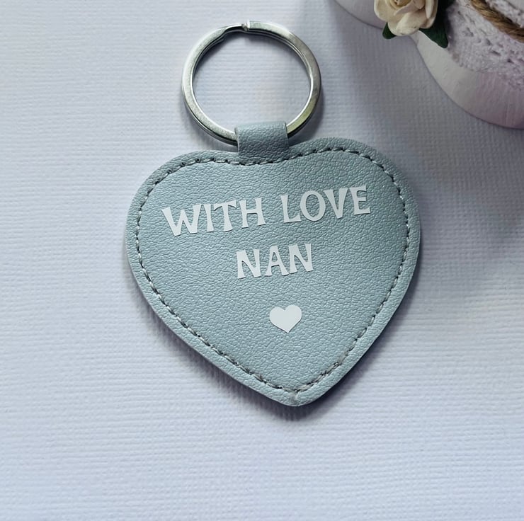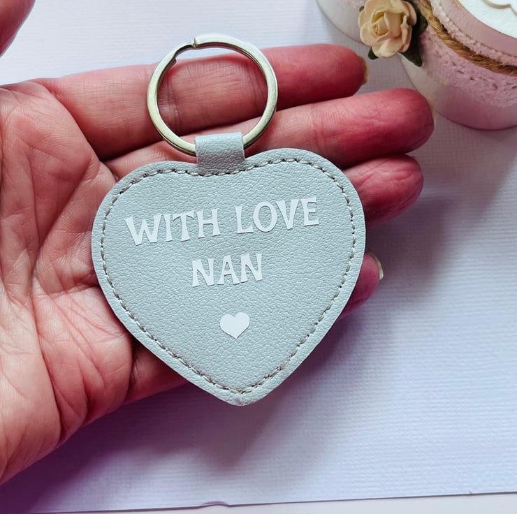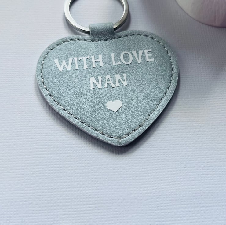 Show your appreciation with our heartfelt With Love Nan vegan leather heart keyring. Crafted from high-quality, eco-friendly vegan leather, this charming keyring is perfect for keeping your keys stylishly organized while celebrating the love for your grandmother. Whether as a gift for birthdays, holidays, or just because, this keyring adds a personal touch that any nan will cherish. It's lightweight, durable, and makes a lovely accessory for bags or purses. Celebrate your nan today with this beautiful and meaningful piece!