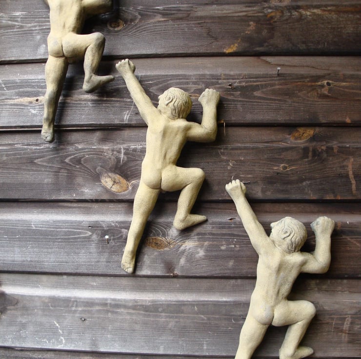 'Naked Rock Climbers' - Set of 3 decorative wall plaques.