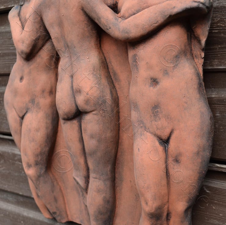 Each of our Three Graces plaques are hand cast at our Sussex workshop in frost proof reconstituted stone with an aged terracotta, white or sandstone colour finish.