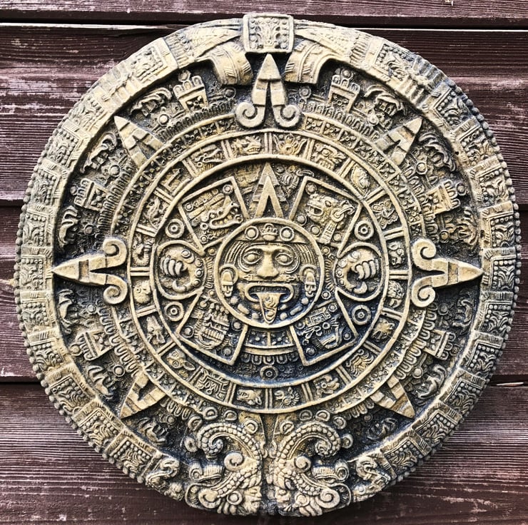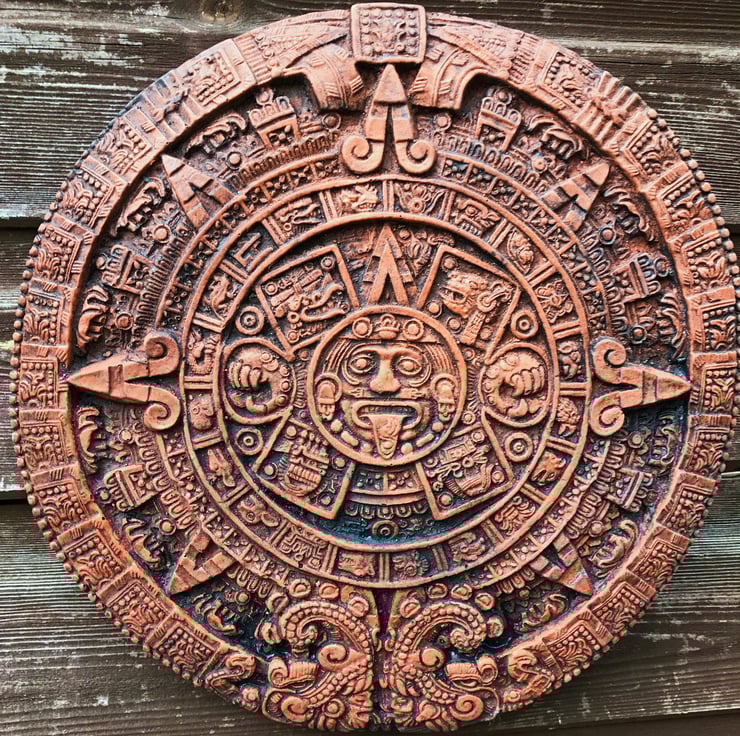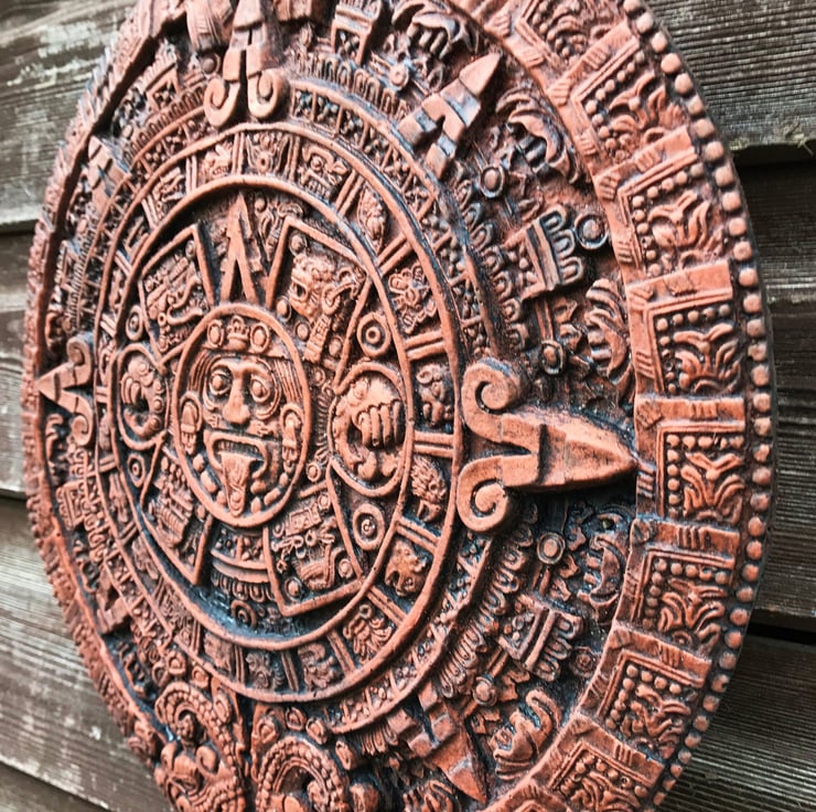 Each of our Aztec Sun Calendar plaques are hand cast at our Sussex workshop in frost proof reconstituted stone with an aged terracotta or sandstone colour finish.