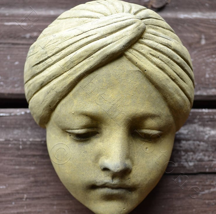 Each of our Art Deco Face plaques are hand cast at our Sussex workshop in frost proof reconstituted stone with an aged sandstone colour finish.