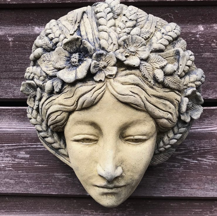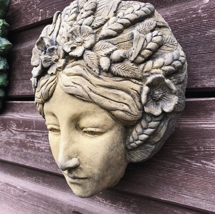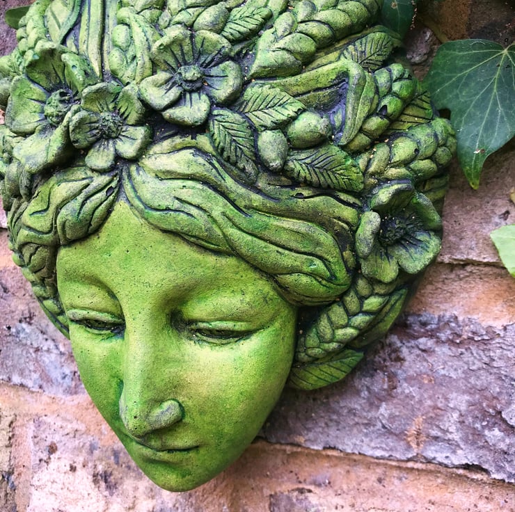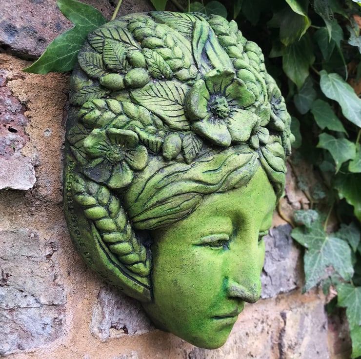 'Harvest Goddess' Green Lady decorative wall plaque and garden ornament.