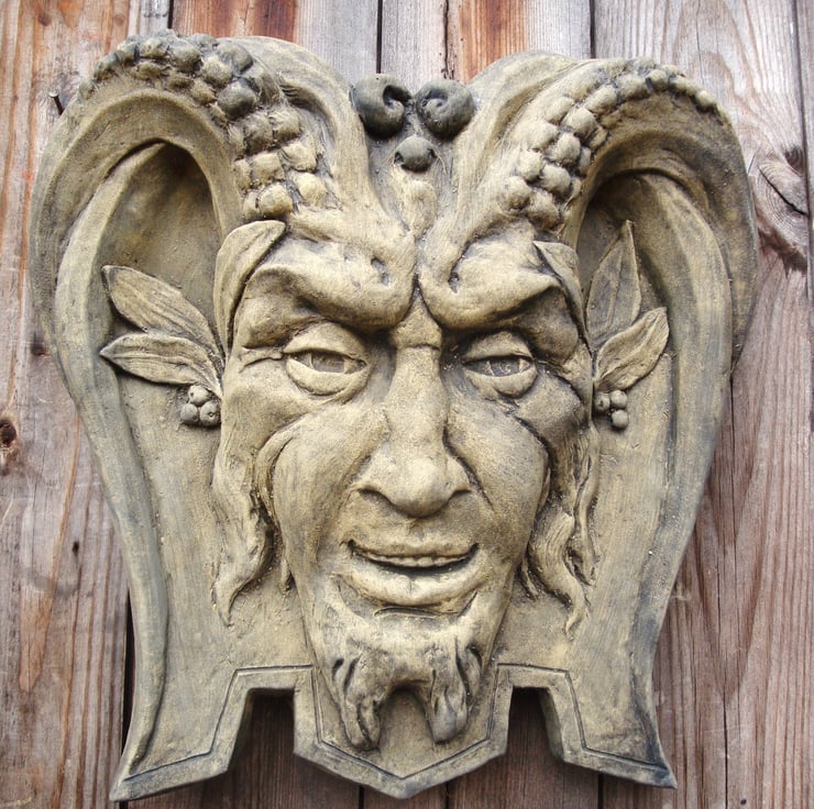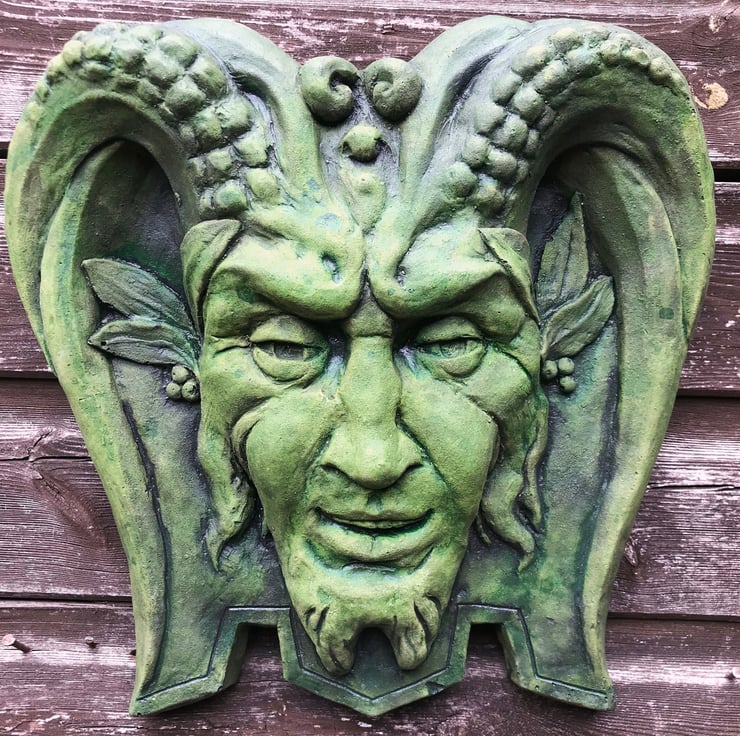 'Pan' Green Man decorative wall plaque and garden ornament.